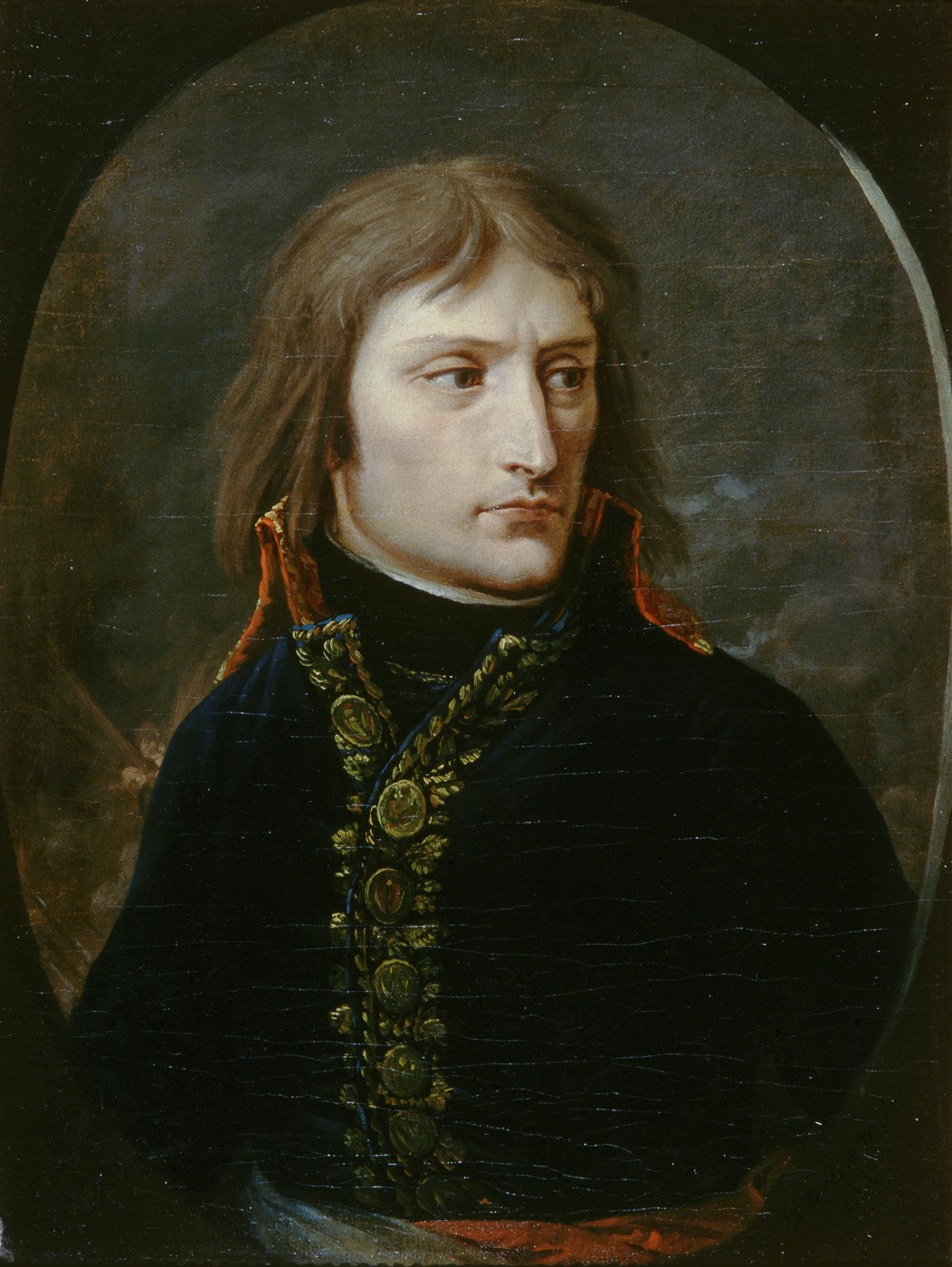 Dès la campagne d’Italie, l’Empereur s’entoure de peintres pressentant que son portrait assurera sa popularité grâce aux moyens de reproductions de l’époque. Ne posant pas, les artistes devaient rapidement se saisir de son image et respecter l’idéalisation voulue par la propagande. Les traits glorifiés traduisent des sentiments héroïques chez Jacques-Louis DAVID (1748 – 1825) et Antoine-Jean GROS (1771 – 1835) tandis que Jean-Auguste-Dominique INGRES (1780 – 1867) en fait une figure divinisée tel un empereur romain ou une figure christique. Mais aucun des portraits ne présentent le même visage ! C’est sans doute celui peint par le plus ancien compagnon de Napoléon, le général Bacler d’Albe (1761 – 1824), qui est le plus ressemblant. Car sans doute les deux jeunes généraux se connaissent parfaitement.
